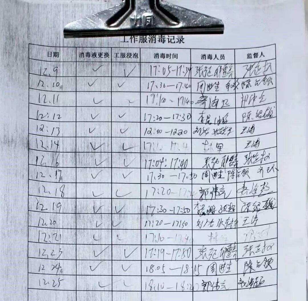 ◆ 所有生产人员统一配置工作服、工作专用鞋,每日对工作鞋服进行臭氧消毒,定期对鞋服使用消毒液浸泡杀毒。