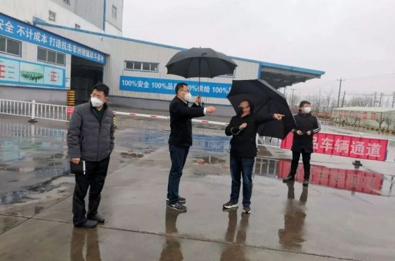 随后,都县长冒着雨雪天气亲临生产现场,详细指导了复工复产工作。进入并体验了消毒通道、体温监测,对固定车辆,固定司机,固定路线和固定客户的“点对点”运货做法给予了肯定。