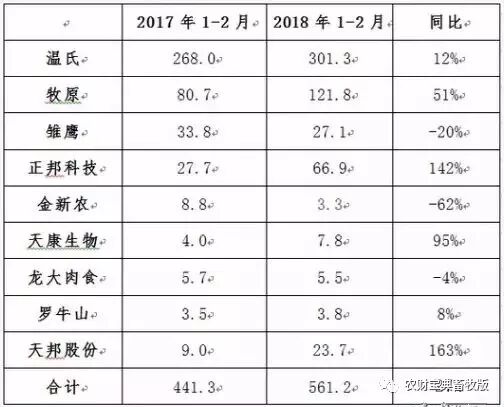 表:2018年1-2月份9大上市公司生猪出栏量(万头)