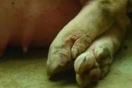 蹄裂是指生猪蹄壳开裂,或裂缝有轻微出血,蹄尖着地,疼痛跋行,不愿走动,其他症状轻微,但生长受阻,繁殖能力下降。