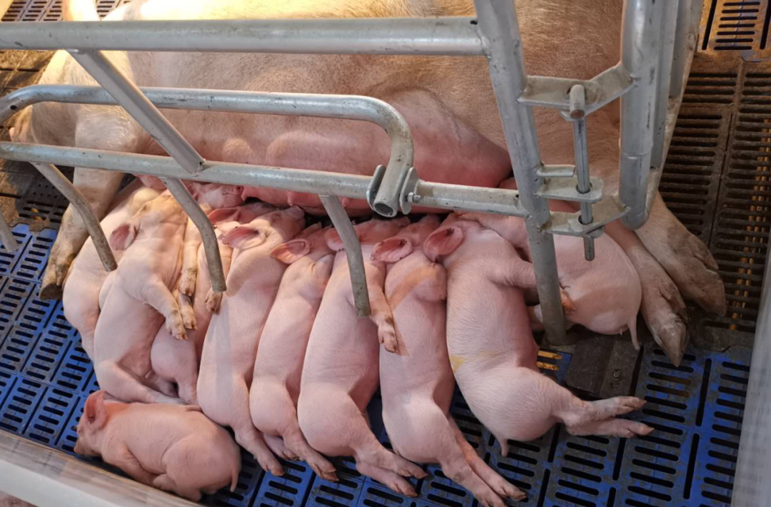 妊娠96天--分娩:胎儿体重生长期,日喂哺乳日粮5公斤左右;